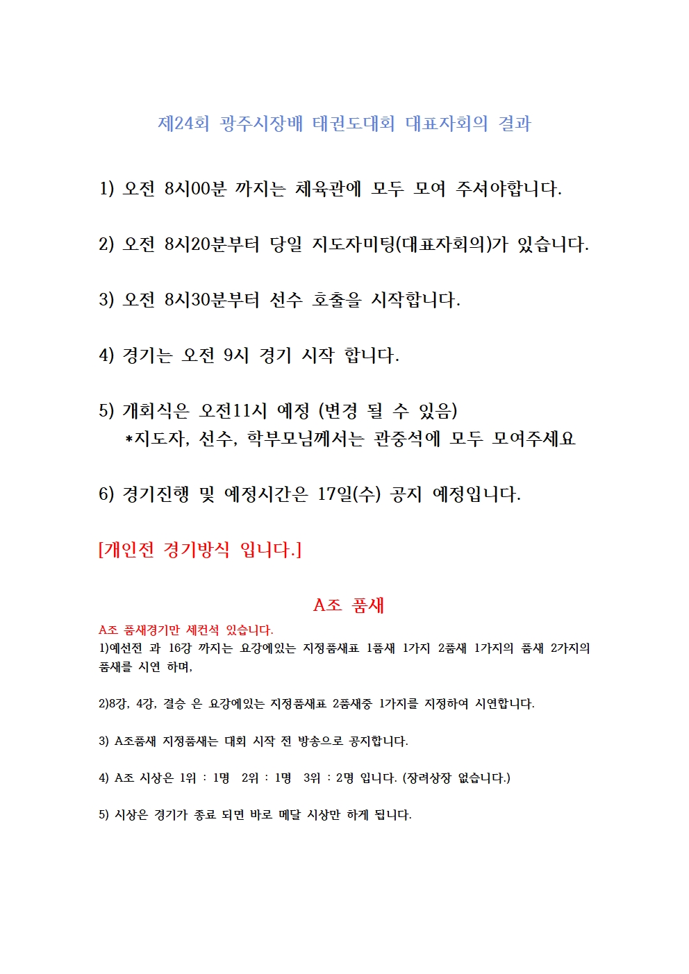 | 공지 | ![]() | 광주시태권도협회 | 12413 | 2016년 9월 9일 |